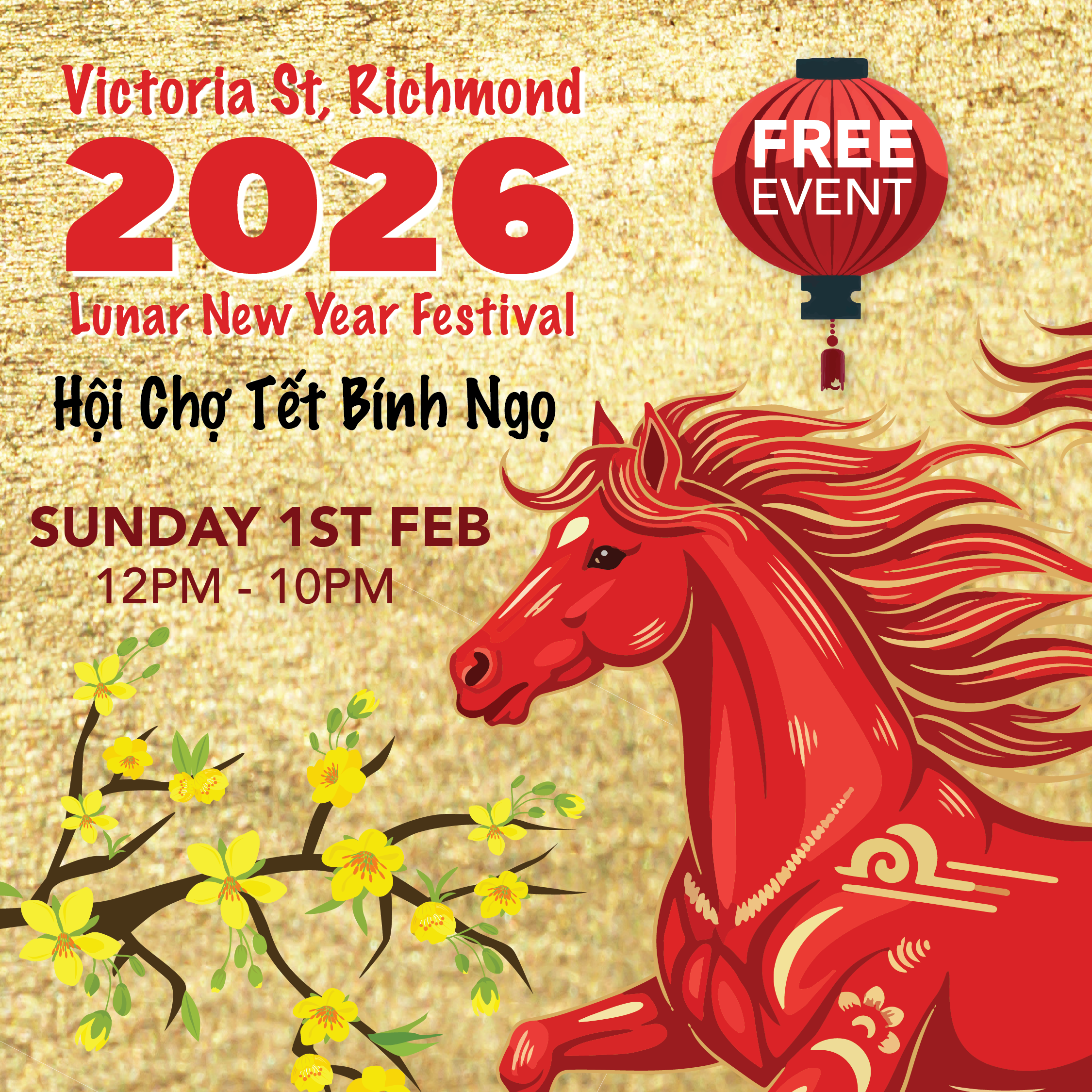 Celebrate the Year of the Horse on Victoria Street, Richmond! Enjoy a vibrant day of street food, music,